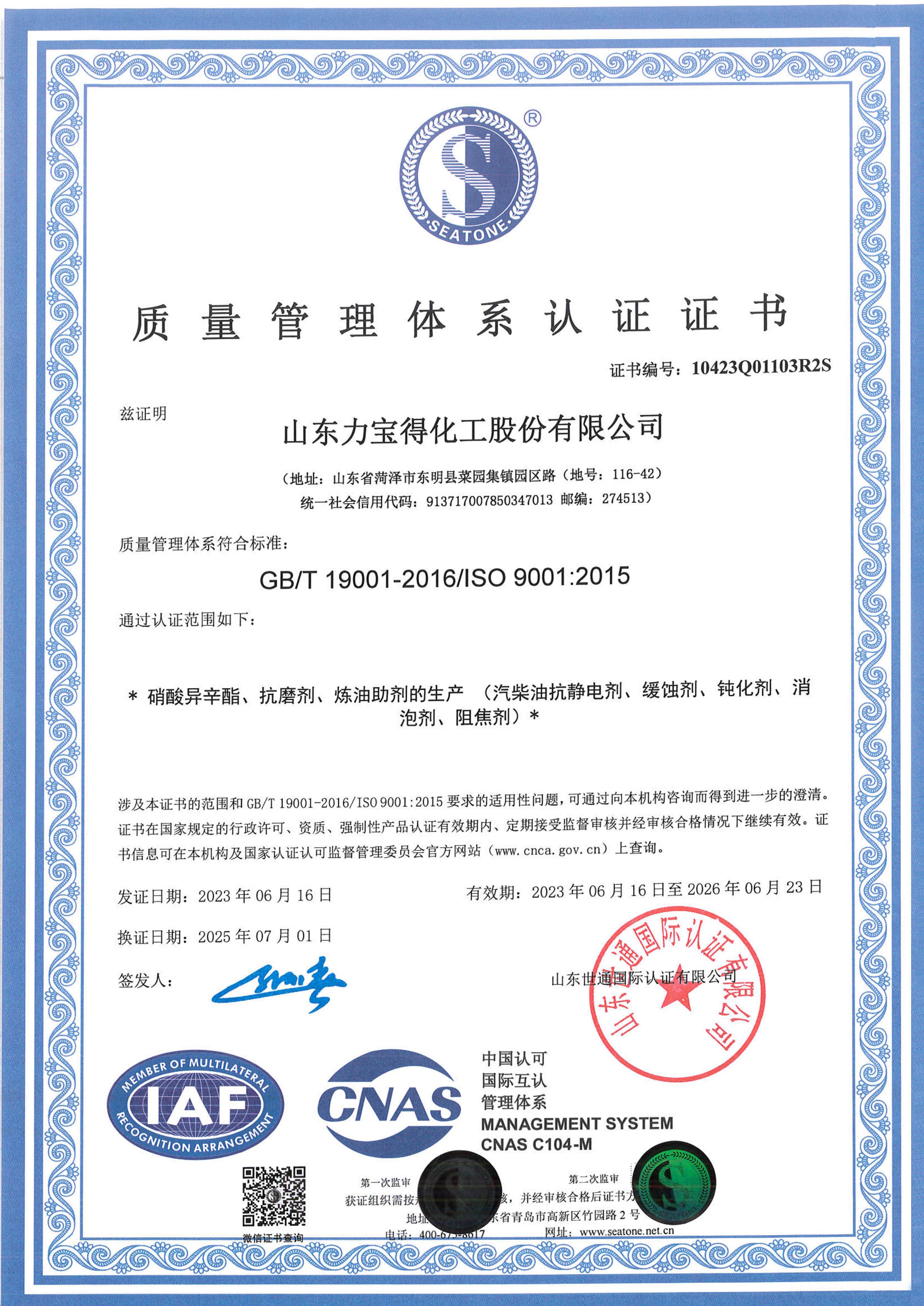 公司累计获得发明专利6项,实用新型专利20余项,发布实施绿色专用化学品技术标准 12项,顺利通过质量管理体系、环境管理体系、职业健康安全管理体系资质认证。曾经获得国家科技部创新型中小企业技术创新基金项目1次、山东省重大创新工程项目1次、省科技厅中小企业创新基金项目1次、菏泽市自主创新重大专项工程项目1次。